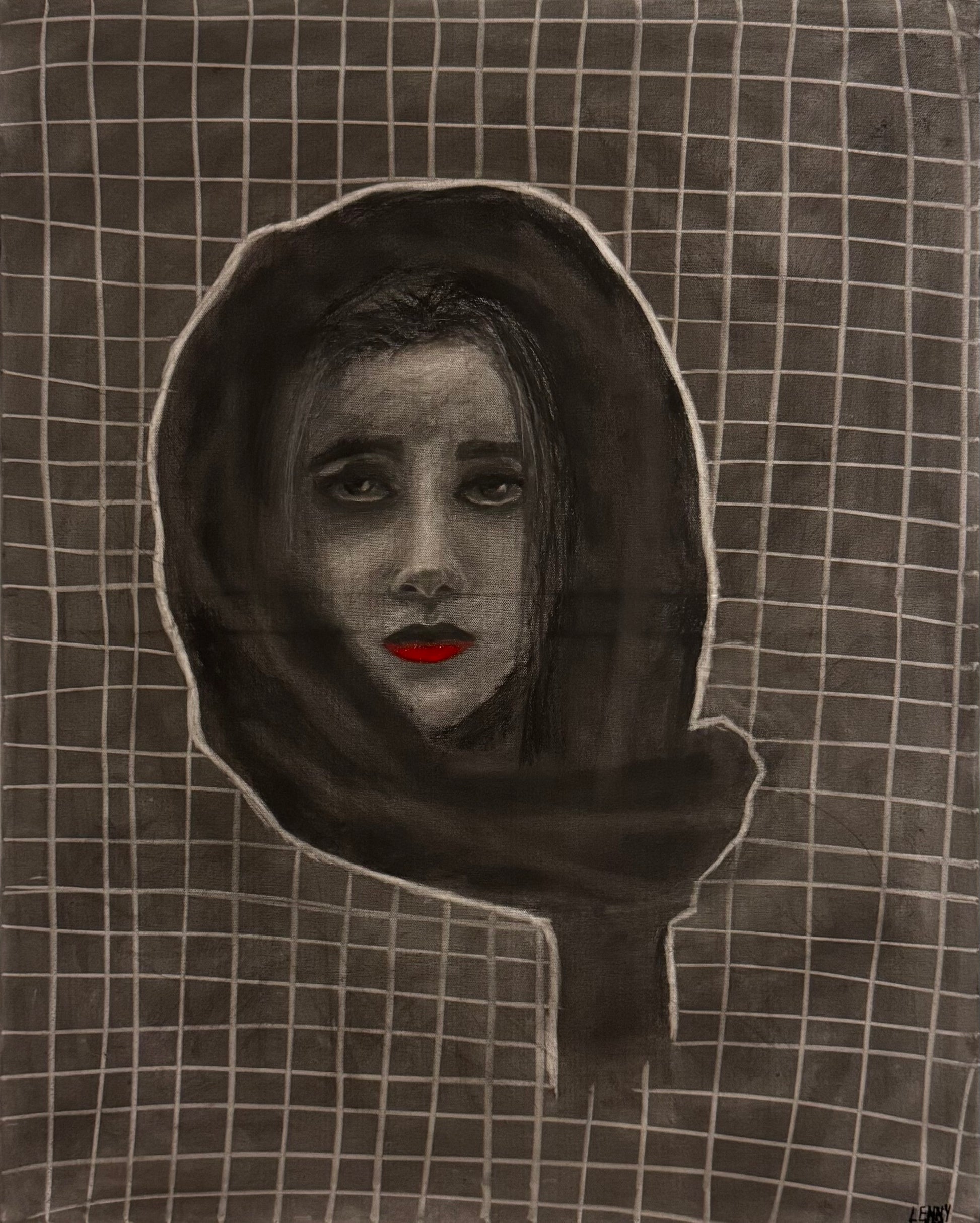 In this charcoal drawing by Adeleye Leonard (Lenny), a woman’s face is softly illuminated against a backdrop of deep lined darkness, her expression one of quiet sorrow. Drawn with charcoal on a canvas 30 x 25" (76.2 x 63.5 cm). Every piece of artwork is specifically packaged sealed with fixatives to protect and keep it in perfect condition upon arrival.
